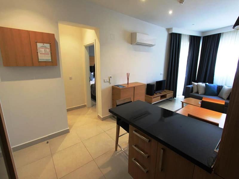 This superb one bed Apartment for sale in Kusadasi consists of a bright, spacious open plan living and dining area with a modern fully fitted kitchen with a breakfast bar. This whole space comes tastefully furnished.