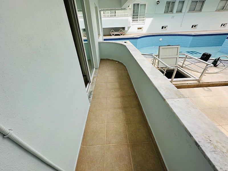 The Apartment features two balconies, one leading off the living area which overlooks the pool and the other leads off the bedroom.