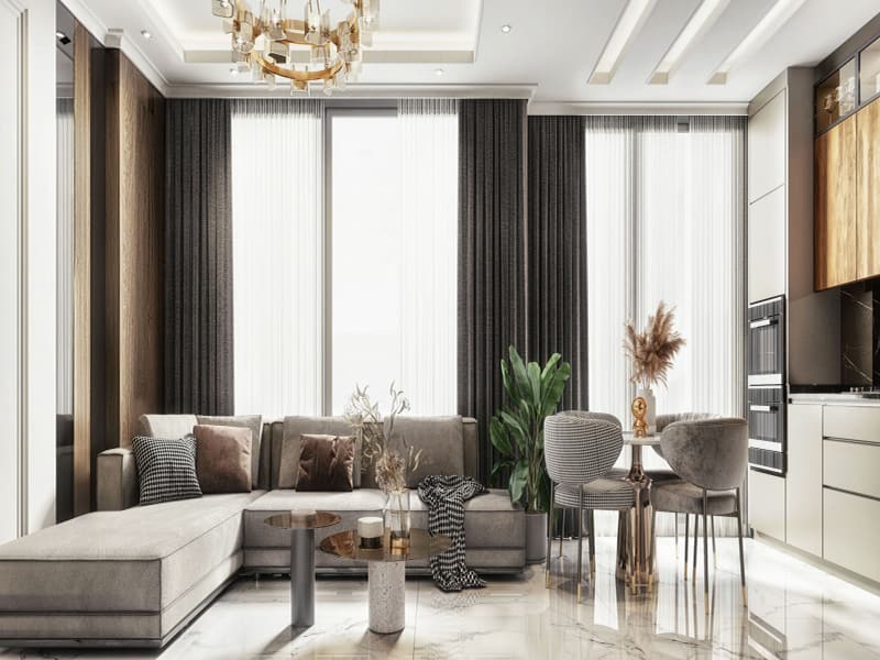 The Apartments come with open plan living and dining areas with modern fitted kitchens complete with lacquered kitchen cabinets and Star Galaxi granite countertops, spacious double size bedrooms and luxury fitted bathrooms complete with custom made bathroom cabinets and tempered glass shower cabins.