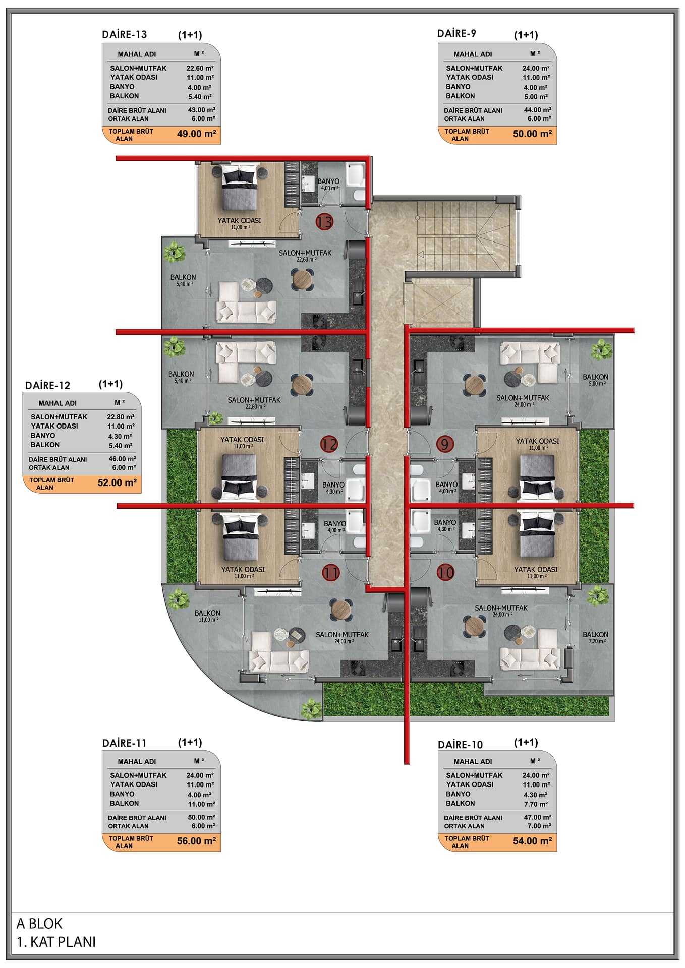 We offer for sale these modern Apartments and Duplexes in Kestel, Alanya. This fantastic project offers a total of 46 properties offering one bed and two bedroom Apartments and two bed and three bedroom Duplexes. All residences have access to the sites lovely on-site facilities.