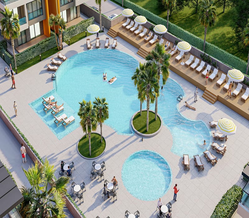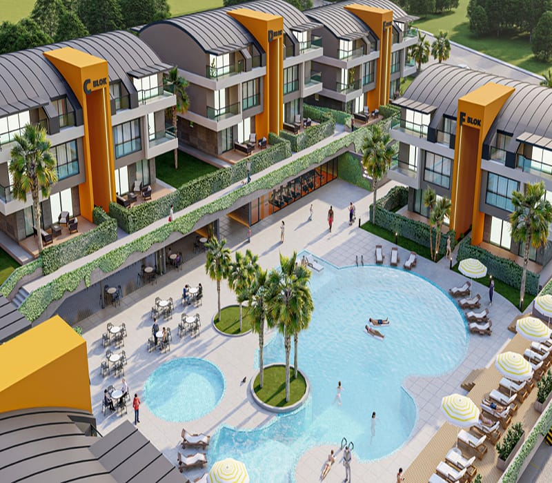 The project is located 800 metres from the beautiful beach and within 700 metres you will find a variety of local shops. Side’s harbour and the historical Apollon Temple can be reached within 4.3 kilometres, plus Manavgat Waterfalls are located 5.5 kilometres away.