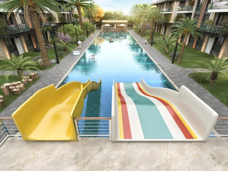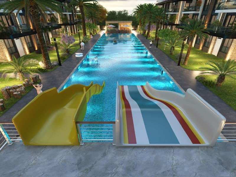 The Apartments are on a private walled and gated complex with a range of super facilities. These include communal Olympic size swimming pool and surrounding sun bathing terraces, water slides, bar area, children’s play area, landscaped gardens and 24 hour security to ensure privacy in a secure complex.