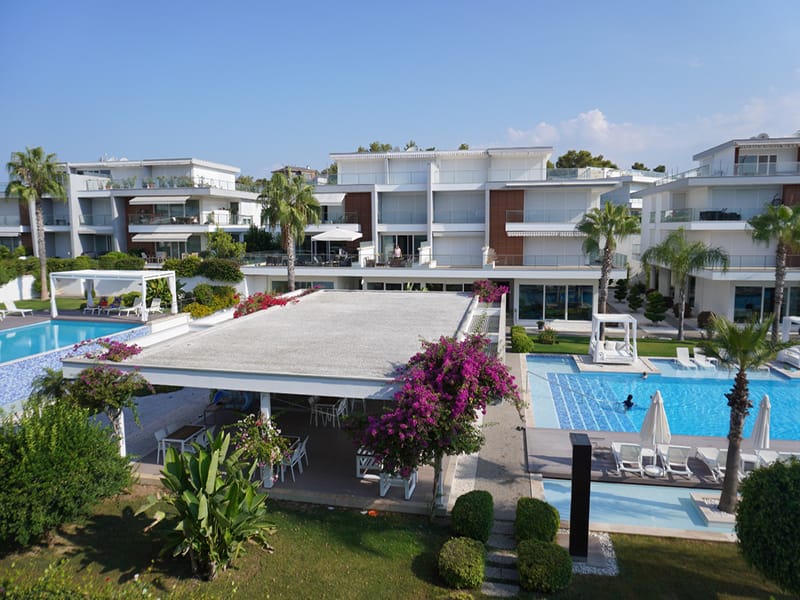 This fabulous complex is located in the beautiful Ilica close to the fabulous Kumkoy resort in Side. The complex is set within beautiful gardens and is in an elevated position backed by beautiful forestry and boasting the most breath-taking views.
