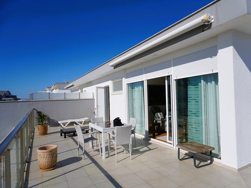 This modern Duplex for sale in Side is split over two floors. The Duplex consists of a large open plan living and dining space with a modern fitted kitchen. The living area has access onto a large roof terrace with great views over the complex and surrounding area. This is the perfect place to relax and enjoy a glass of wine on those nice summer evenings.