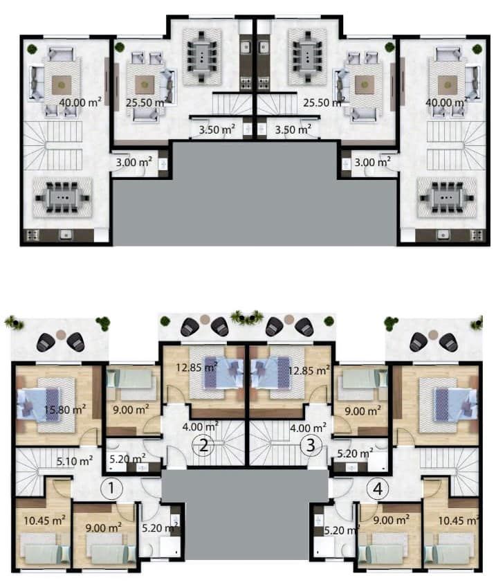 These fabulous Duplexes for sale in Akbuk each come with a bright, open plan living area consisting of a lounge, dining space and beautifully fitted kitchen, all bedrooms are spacious and double in size and all bathrooms come with luxury fixtures and fittings.