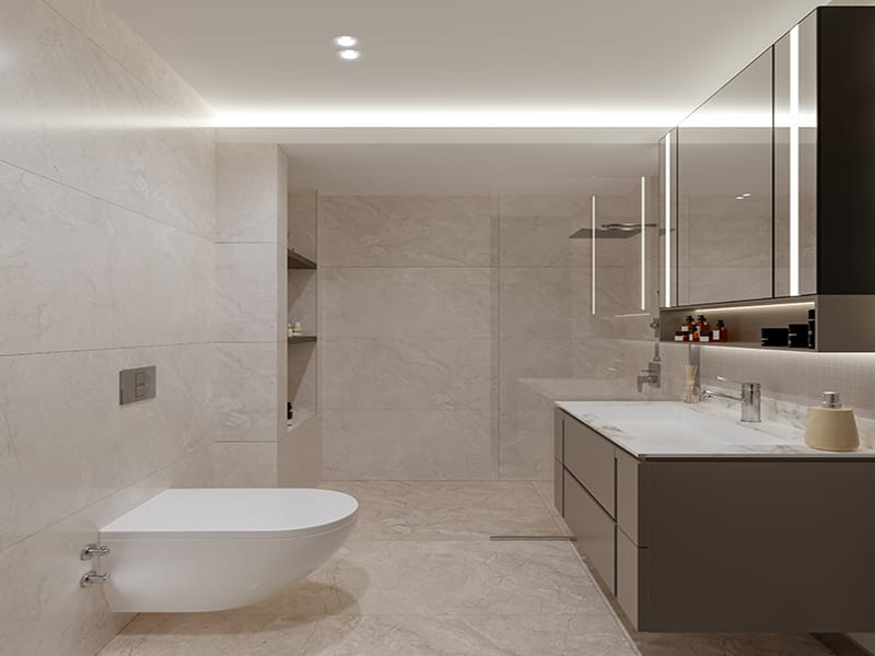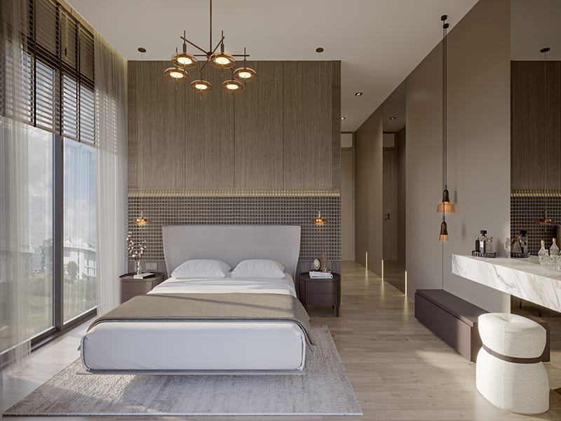 These four bedroom Apartments for sale in Alanya come with air conditioning infrastructure, double glazing on all windows, sliding doors to balconies, under-floor heating, ceramic tiled flooring, built-in spot lighting, video phone entry system, steel security doors, WiFi and TV satellite infrastructure and smart home system. You can control some of the features with a control touch panel or mobile phone. You can use the device to control the lighting, air con, under-floor heating, curtain control, water and smoke and alarm systems.