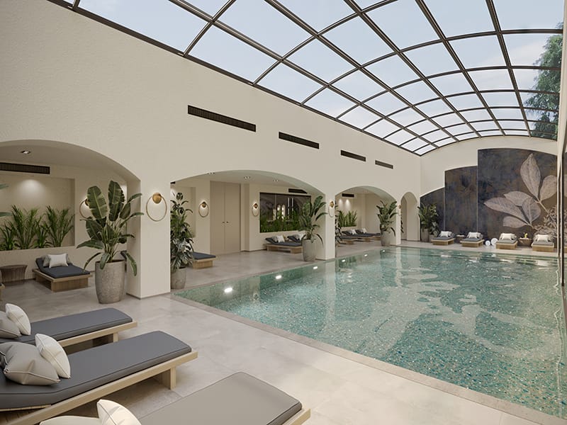 The complex enjoys a host of facilities which include both outdoor and indoor communal swimming pools and a children’s pool, beautifully landscaped gardens and botanical gardens, walking trails, sunbathing areas, a children’s playground, children’s playroom, a Pilates studio, a fitness centre as well as a Turkish bath, steam room, salt room, sauna and massage room, a tennis court as well as lounge areas and social areas.