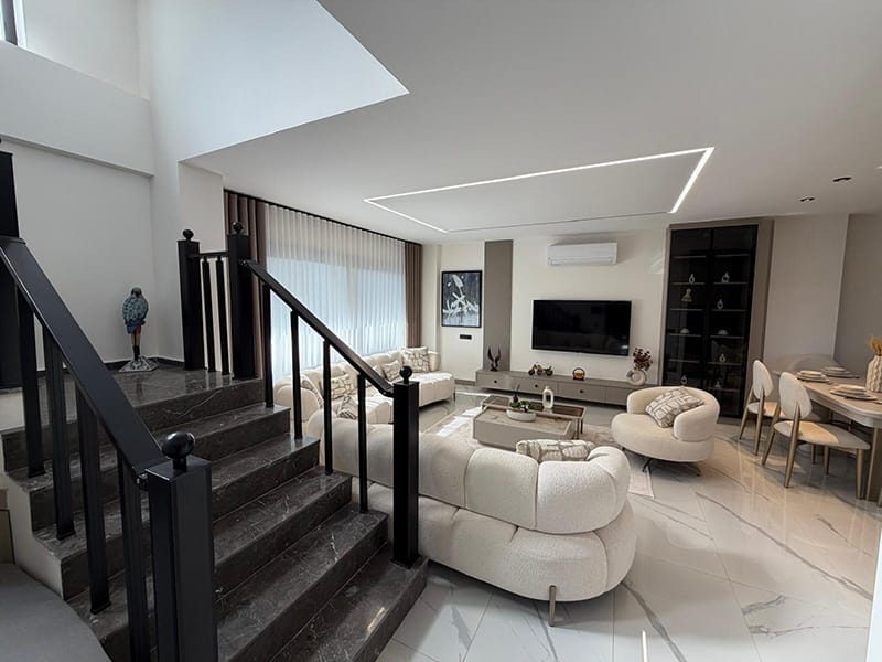 This fabulous, five bedroom detached Villa for sale in Turkey comes with fitted air conditioning units, tiled flooring, it boasts smart home technology, shutters to the windows and is fully furnished to the very highest standard. It includes all fixtures and fittings including drapery and blinds and the fully integrated kitchen appliances. This key ready home is equipped with everything you need to start enjoying this Villa straightaway.