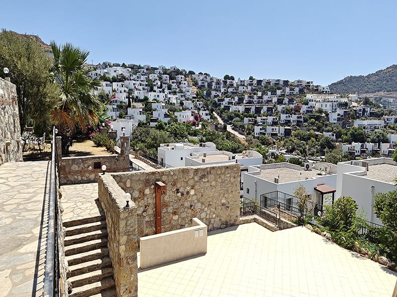 This peaceful location is in quiet Gumusluk, and is close to the bus route. It is within an easy walking distance of just a couple of minutes of local shops and markets. It’s just 21 km or a 20 minute drive into exciting Bodrum and all it has to offer.