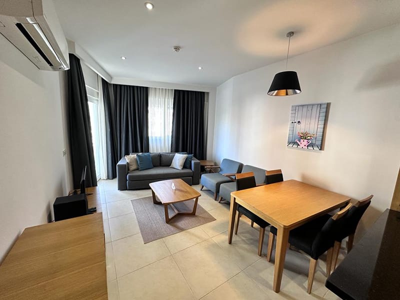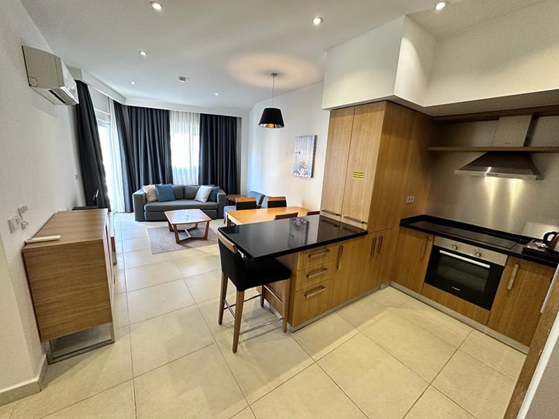 This stylish one bed Apartment for sale in Kusadasi consists of a bright, spacious open plan living and dining area with a modern fully fitted kitchen complete with all appliances which includes a dishwasher, fridge freezer and washing machine. This whole space comes tastefully furnished.