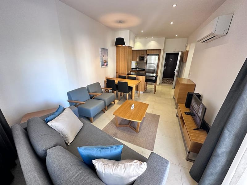 The Apartment comes with modern lighting, fitted air conditioning, TV’s in living area and bedroom, a telephone and high speed internet.
