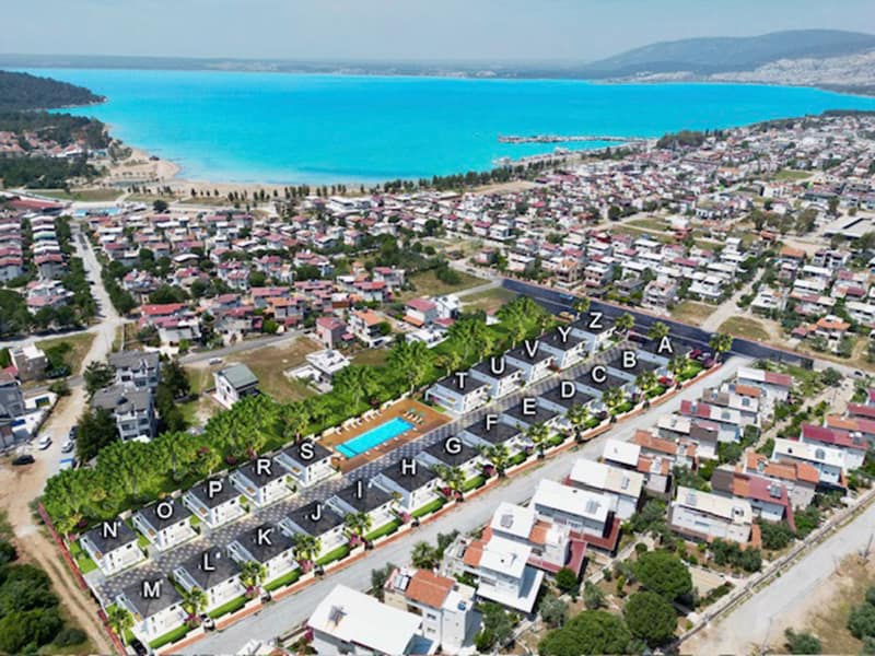 All around you are other lovely Villas and land plots, no large apartment blocks here, the location is in peaceful area, but access either by car or the local dolmus service into the larger resort of Altinkum is extremely easy and only 20 minutes away, where you will find everything a larger resort has to offer, large marina, a great assortments of bars and restaurants, along the newly refurbished seafront, the old town with its many shops to buy anything you need.