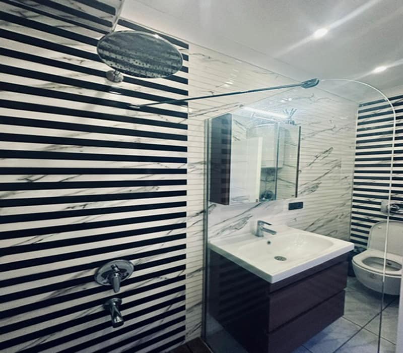 The Apartment has one double bedroom which comes beautifully furnished and one fully tiled bathroom with a walk-in shower.
