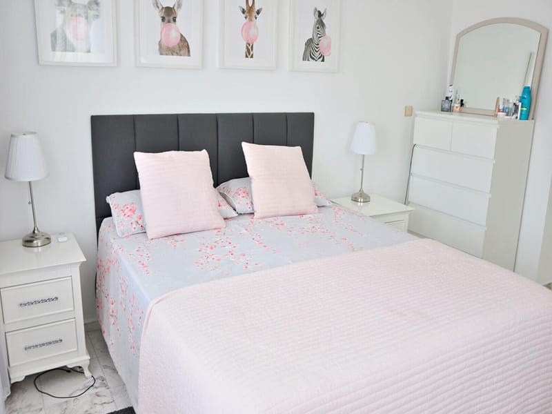 Three very spacious bedrooms are found on the upper floor, and two of the bedrooms have balconies where you can sit and drink your morning coffee. The main bedroom is large and airy and has an en-suite bathroom. The balcony leads off and here you can see the picturesque mountain views. A family bathroom is shared by the other two double bedrooms.
