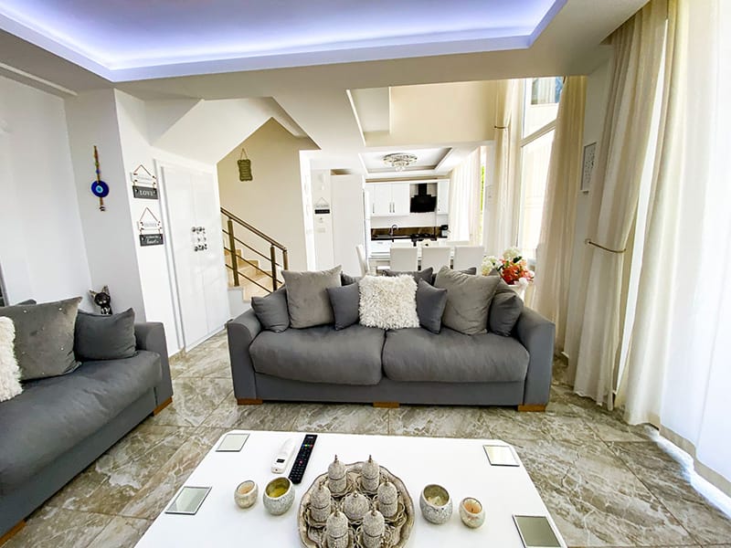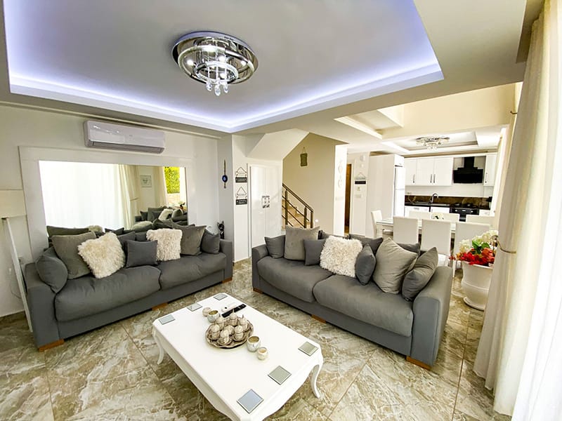 This grand Detached Villa for sale in Fethiye comes with fitted air conditioning, top quality flooring, fully tiled en-suites with top quality sanitary ware, all high quality fixtures and fittings and comes furnished to an immaculate standard.